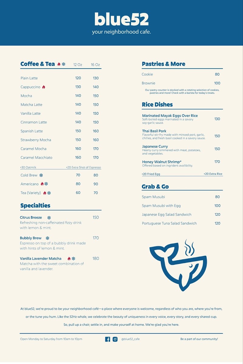 Customer experiences further accentuate what makes Blue52 special. Rowi De Guzman expressed delight at the friendly staff and unique cozy atmosphere, mentioning how good the Japanese curry was. Gian Kim Erum echoed similar sentiments, appreciating the student-friendly pricing and the engaging card games that bring an extra layer of fun to dining with friends. Sharon Carreon found the ambiance perfect for a laid-back outing, while Edwin Joseph Melendez declared the cafe as his go-to spot for coffee, admiring the overall quality of food and service. Ebenezer Philip adds to the mix with praise for the owner and staff, underscoring the quintessential essence of a true neighborhood cafe.
